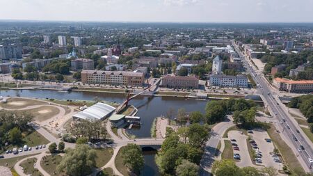 Aerial view of Birstonas city wich is located on the shore of Nemunas river in Lithuania. Its a small SPA resort with natural mineral waters.