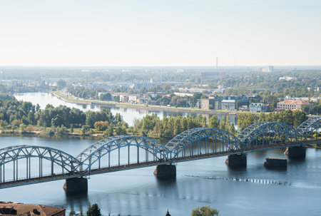 Top view of the railway bridge across the river Daugava in Riga, Latvia