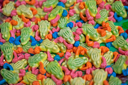 jelly candies in the shapes of frogs in a confectionery