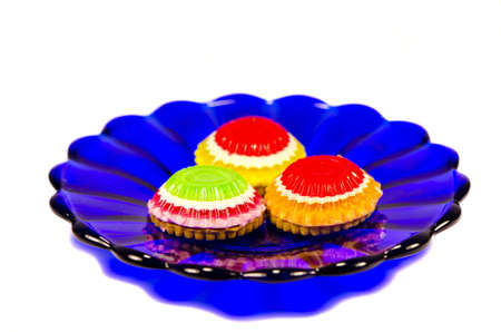 Mini blueberry fruit agar agar or jelly cake decorated with strawberry