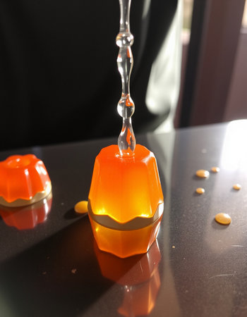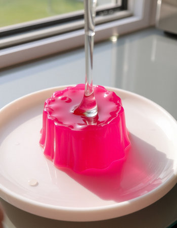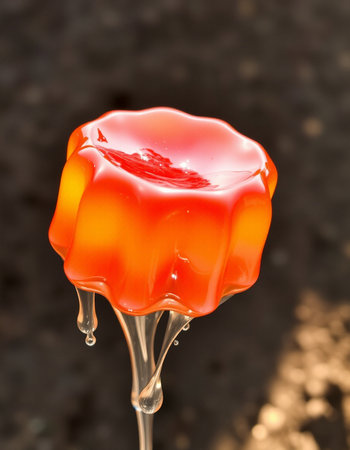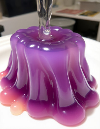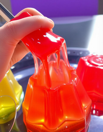 Iridescent jelly delight on reflective surface with vivid colors concept of colorful art, sweet dessert, food photography, creative design, visual aesthetics.