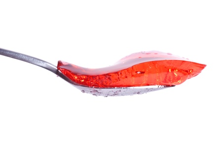 strawberry jelly on spoon isolated on white background