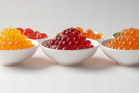 Vibrant, handcrafted candies in assorted hues against a pristine white background