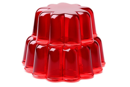 This bright red gelatin dessert is showcased in a high-quality isolated cutout on a clean white background, emphasizing its glossy texture and vibrant color, perfect for food-related projects.