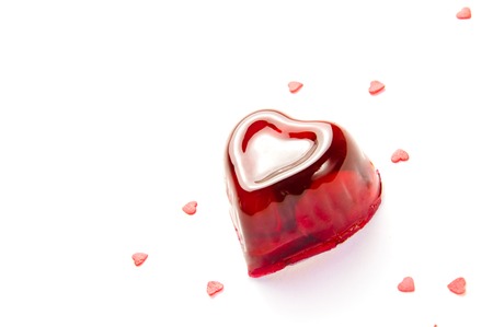 red heart cherry jelly on white background