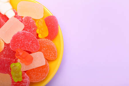 Colorful fruit jelly candies close-up macro photography with soft focus