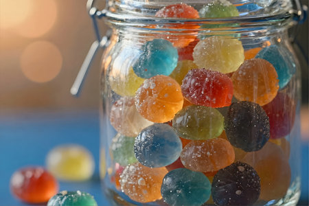 AI Generated. Colorful Gummy Candies in a Glass Jar Sweet Treat Delightful Confectionery