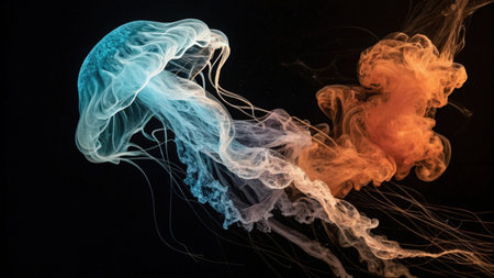 Beautiful jellyfish aesthetic intertwining jellyfish tentacles on a dark background