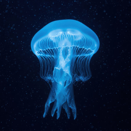 Glowing Jellyfish Floating in Dark Ocean Depths