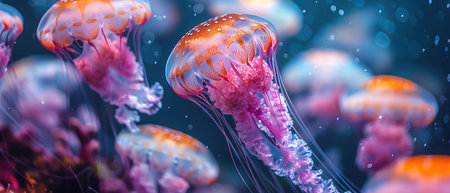 Colorful jellyfish in an underwater scene with vibrant hues and fluid motion. Ideal for nature and marine life themes.