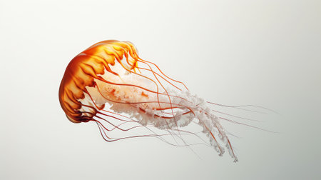 Aesthetic light brown-yellow jellyfish floating on a light background. Ocean ecosystem concept. Generative AI.