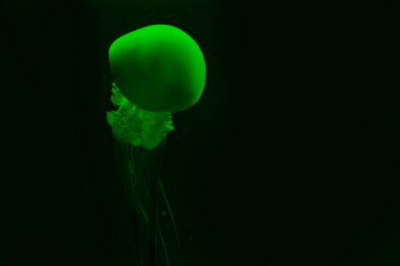 jellyfish in green neon light on black background