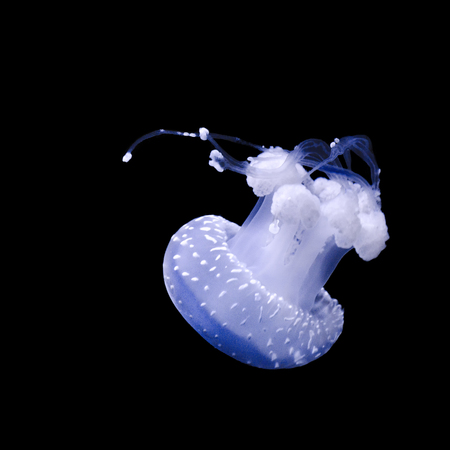 White Jellyfish Floating on Black Background
