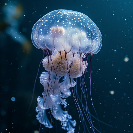 Ethereal Jellyfish Floating in Deep Blue Sea