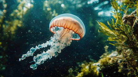 Graceful Jellyfish Floating Through Crystal Clear Ocean Waters in a Vibrant Marine Environment