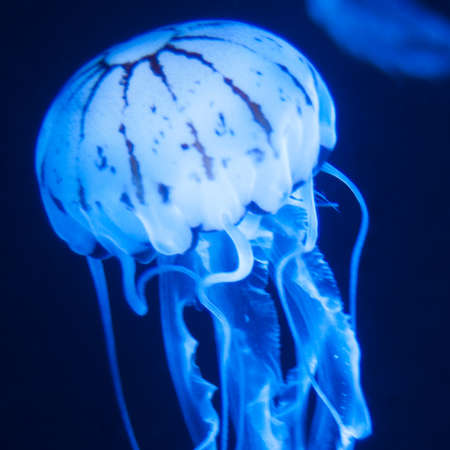 Jellyfish floating in the water. Blue jellyfish background.