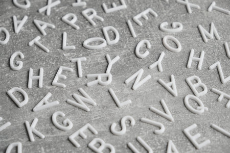 White letters English alphabet gray concrete background