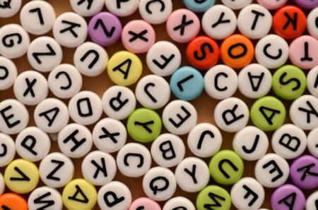 A detailed background of jumbled alphabet beads, perfect for concepts related to childhood education, spelling, reading, and creative learning.