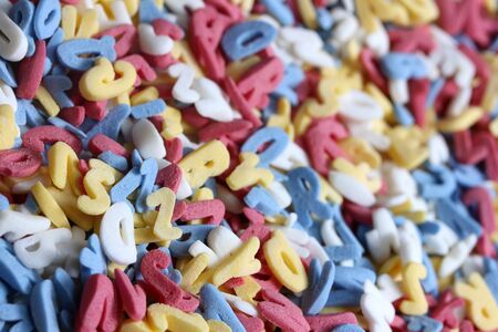 Mixed solid letters pile closeup photo. Education background concept