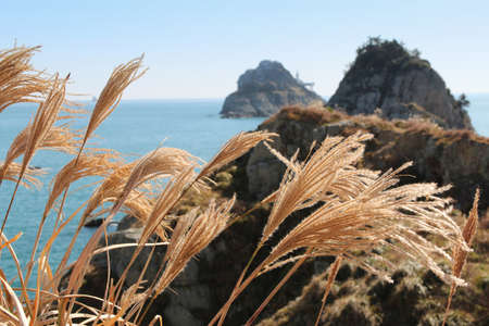Pampas grass with the Oryukdo Islands as background, South Korea