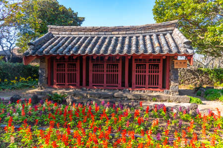Beautiful scenery of pavilion at Dakmeor Coast, Jocheon-eup, Jeju-si, South Korea.