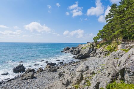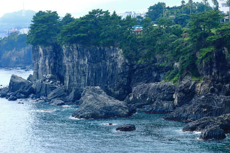 It is a beautiful summer landscape of the coast of Jeju Island.