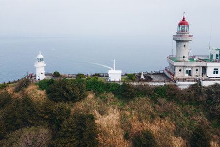 Lighthouse on Udo Island, Jeju Island province, South Korea, coastline sea landscape sunny view with Light, U Island, Soseom cow island, Jeju-si, Jeju-do, Lighthouses of South Korea