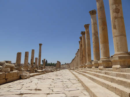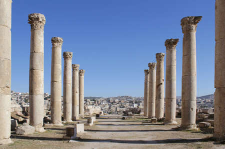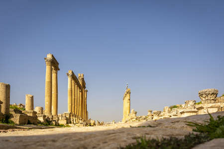 Roman Columns in in the Jordanian city of Jerash (Gerasa of Antiquity), capital and largest city of Jerash Governorate, Jordan
