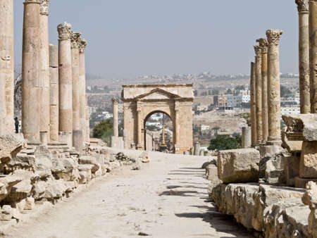 Romans ruins - Ancient Roman city of Jerash of Antiquity , modern Jerash, Jordan