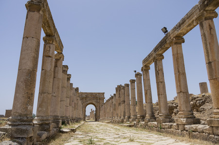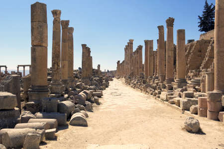 Columns of ruined Greco-Roman city of Gerasa in Jerash, Jordan