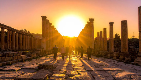 Ruins of the ancient city of Jerash in Jordan at sunset