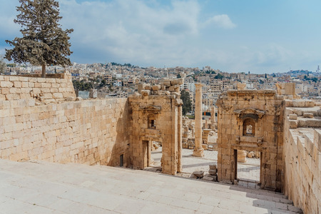 Roman ruins in the Jordanian city of Jerash (Gerasa of Antiquity), capital and largest city of Jerash Governorate, Jordan