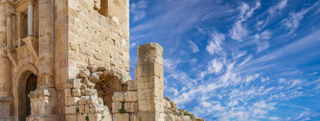 Roman archeological remains in Jerash in Jordan on a sunny day.
