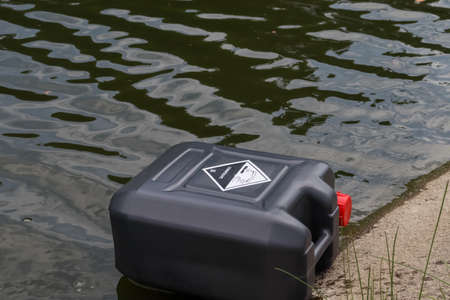 black chemical tank in industrial canal and destroy the environment