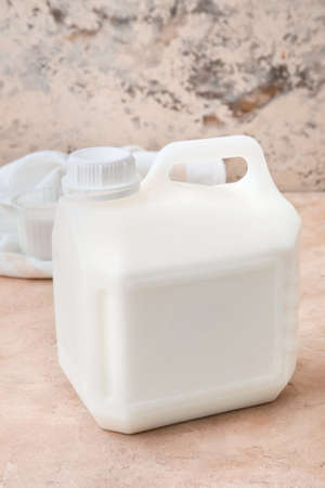 Gallon bottle of milk on table