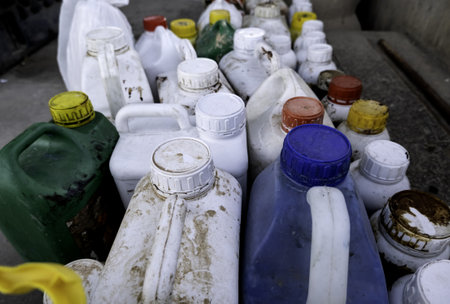 Old chemical containers for recycle - Recycling dangerous waste concept