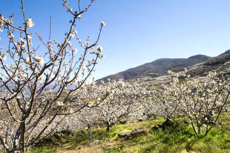 Flowering cherry trees in Jerte Valley in Spain