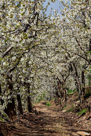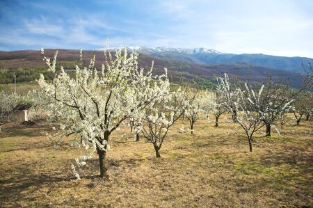 Cherry blossom in Jerte Valley, Caceres. Spring in Spain. Seasonal