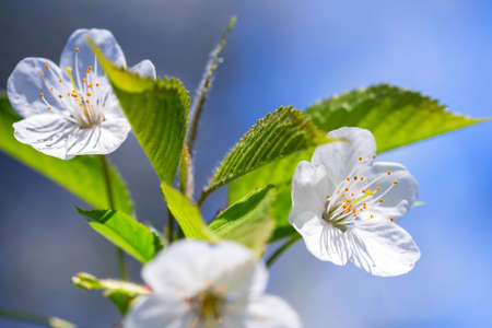 White blossoming cherry flowers closeup. Spring background