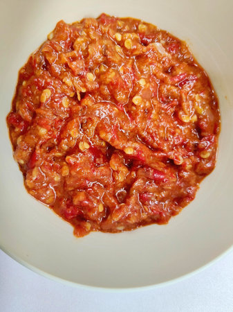Hot Sambal Bawang Or spicy Onion Chilli sauce, in shallow focus