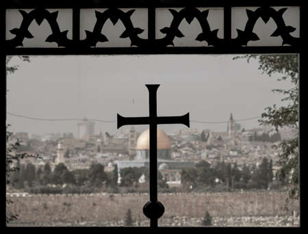 The cross on the background of Jerusalem Old City