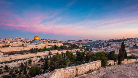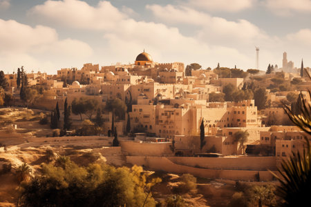A cityscape of Jerusalem with ancient architecture, Israel