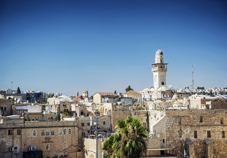 Panoramic view of the Solomon's temple remains and Al-Aqsa Mosque minaret in Jerusalem, is believed by Muslims to be the second mosque on earth after the Kaba.