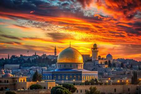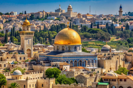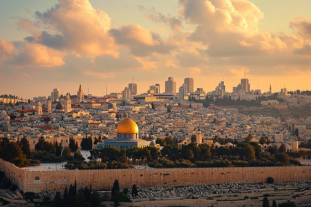 Jerusalem skyline with an emphasis on spiritual landmarks Ai generated