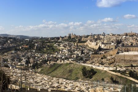 JERUSALEM, ISRAEL - FEBRUARY 21, 2014: View of the Old City of Jerusalem from the heights