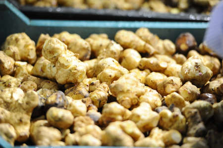 A pile of very delicious exotic vegetables, sunroot in a grocery