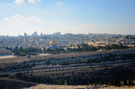 Day view of Jerusalem old city from the Mount of Olives