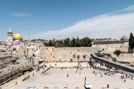 Jerusalem, Israel - July 10, 2019: View of the Western Wall of Jerusalem Wailing Wall and the Dome of the Rock