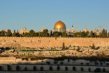View of the wall of the old city and the golden dome of the mosque. Jerusalem
