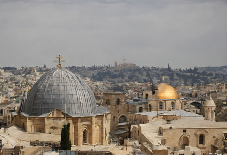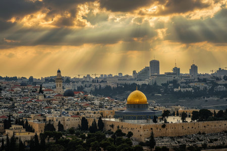 Jerusalem skyline with an emphasis on spiritual landmarks Ai generated